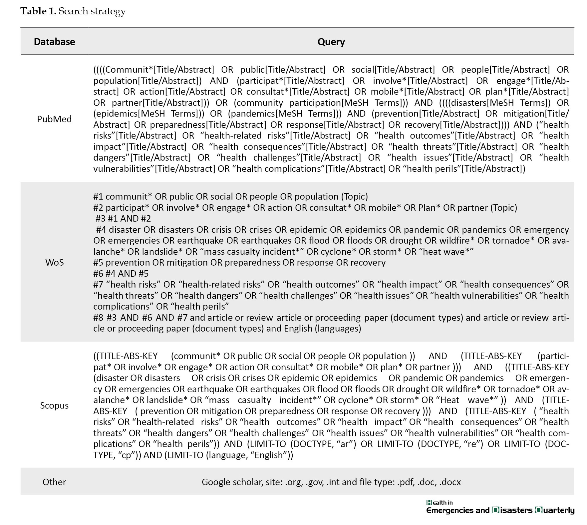 Over the past few decades, different disaster management (DM) approaches have been employed across various countries. In the last two decades, the paradigm of DM has shifted from merely responding to disasters to a more comprehensive framework known as disaster risk management (DRM), which includes mitigation, preparedness, response, and recovery [3]. Since 2015, following the adoption of the Sendai framework, there have been significant changes in discussions surrounding DRM, notably highlighting a paradigm shift from government-driven approaches to community-based DRM [4, 5]. In response to both current and future public health challenges, as well as the necessity for efficient resource management, health emergency and disaster risk management (Health EDRM) has become a critical framework. This concept integrates contemporary practices and emphasizes the critical role of health systems and community participation (CP). The cornerstone of effective Health EDRM lies in reinforcing a country’s health system, with a particular focus on engaging communities and promoting participatory activities [6]. By focusing on community-based strategies, Health EDRM aims to build resilience and lay the groundwork for effective mitigation, preparedness, response, and recovery in the face of various hazardous events, including emergencies and disasters [7]. Numerous studies have reported the effectiveness of CP approaches in enhancing Health EDRM outcomes [8-13].